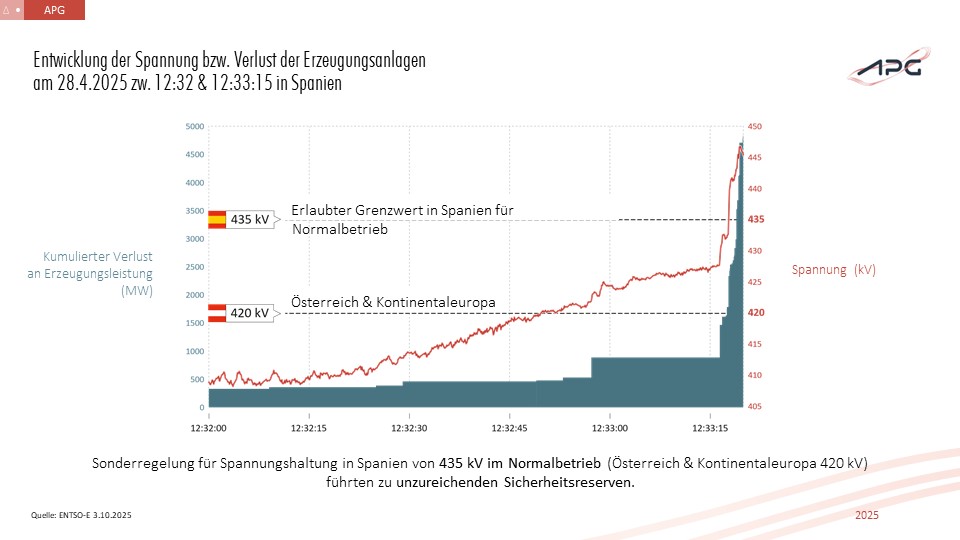 "In Spanien hat man über Jahre hinweg Netzanschlussbedingungen für Kraftwerke nicht aktualisiert. In Österreich sind wir aufgrund unserer modernen Netzanschlussbedingungen bzw. auch durch die umgesetzte automatische Spannungsregelung der im Übertragungsnetz angeschlossenen Donaukraftwerke bestmöglich aufgestellt", so APG-Vorstandssprecher Gerhard Christiner.