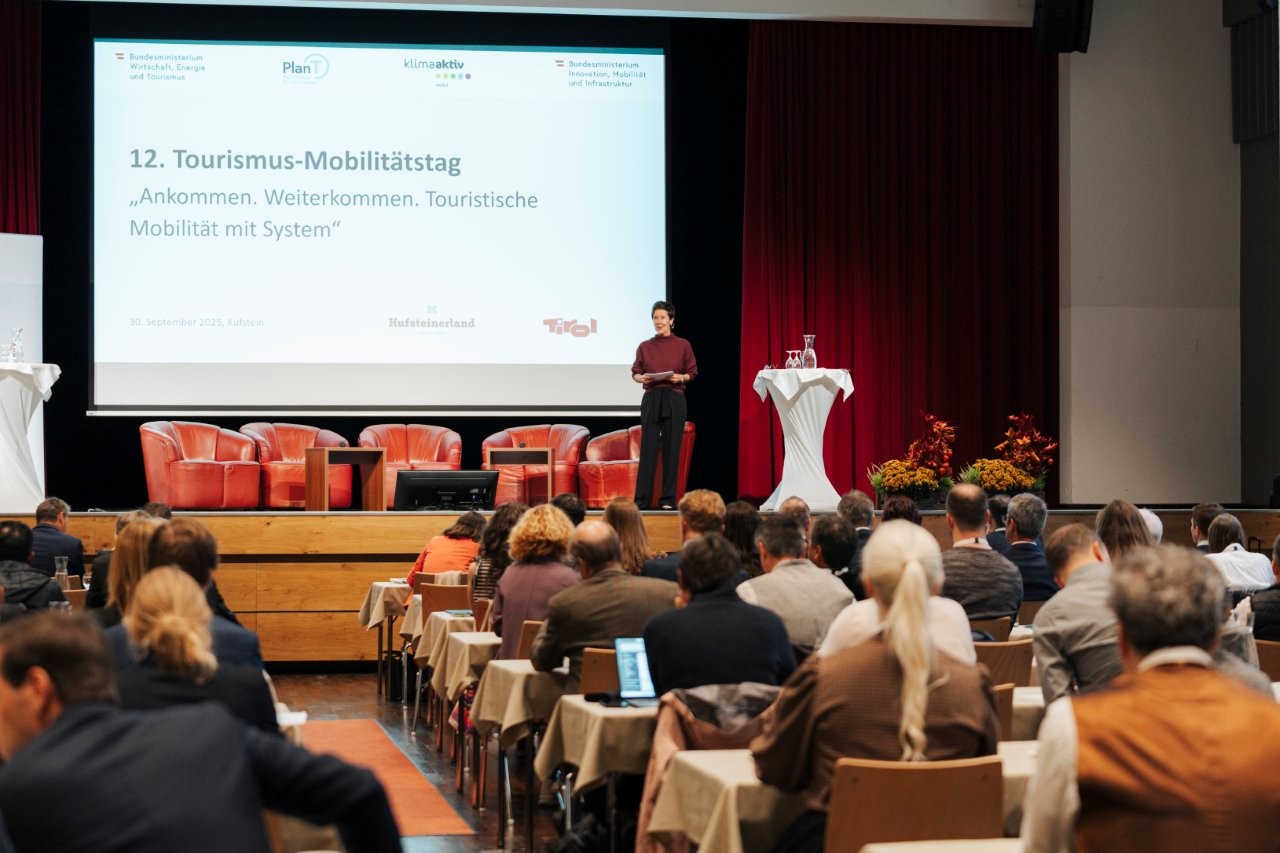 Am 30. September 2025 luden das Tourismusministerium und das Mobilitätsministerium zum 12. Tourismus-Mobilitätstag nach Kufstein/Tirol. Unter dem Titel "Ankommen. Weiterkommen. Touristische Mobilität mit System." diskutierten mehr als 170 Expertinnen und Experten die Chancen und Herausforderungen einer Tourismusmobilität im Kontext einer Mobilitätswende und dem steigendem Bedürfnis nach Nachhaltigkeit.