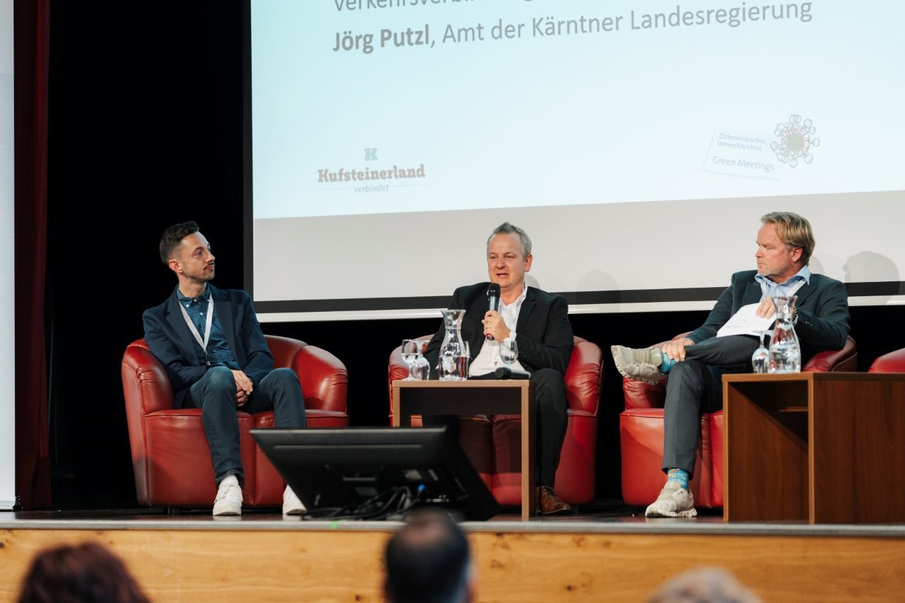 Das Publikum nutzte die Diskussionsrunden intensiv für Rückfragen und brachte zusätzlich eigene Beispiele ein. Auch in den Pausen wurde der Austausch rege fortgesetzt. Dabei bot sich den Teilnehmenden die Gelegenheit, sich an den Informationsständen über verschiedene Initiativen und Programme zu informieren – darunter das klimaaktiv mobil Beratungsprogramm für Tourismus und Freizeit, OLÉ – Österreichs Leitstelle für Elektromobilität, der Mobility Innovation Support Hub (MISH), das Österreichische Umweltzeichen, Zuugle, Naturtrip, Bikeguide Austria sowie die Mountainbike-Koordinationsstelle.